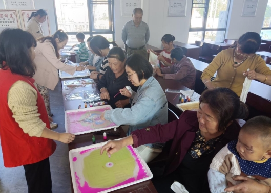 手工拓染丝巾环节更是吸引了众多老年人的热情参与。志愿者为每位老年居民发放了手工拓染丝巾的材料,并耐心指导他们进行操作。老年人们展示出他们的艺术才华,花样百出的丝巾作品陆续完成,别具一格的花纹给活动现场增添了无限的色彩。