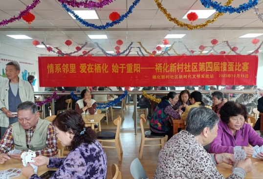 金秋十月爽,九九话重阳。为弘扬中华民族敬老爱老的优良传统,丰富社区居民、残疾人的精神文化生活,增进社区居民的邻里关系。10月19日上午,栖化新村社区、残协开展“情系邻里 爱在栖化 始于重阳”——栖化新村社区第四届掼蛋比赛。