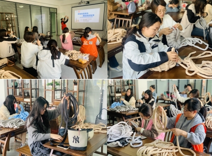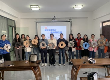 紧接着,志愿者和大家一起动手编织抱枕。志愿者首先为大家分发了提前准备好的材料,随后大家跟着志愿者一步一步的学习如何编织。经过志愿者的教学指导,大家轻松地学会了抱枕的制作方法,没一会儿功夫就都制作完成了,妇女们个个都成就感十足。
