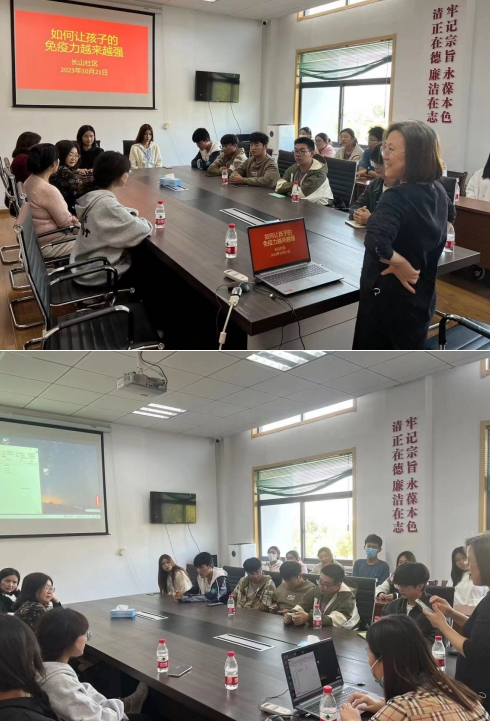 2023年10月26日上午,长山社区新时代文明实践站志愿者在社区三楼面向社区居民代表开展如何让孩子免疫力越来越强主题宣讲活动。活动中志愿者从健康饮食开始介绍,向孩子和家长们传授营养均衡的饮食知识,告诉他们食用丰富的水果、蔬菜、全谷类食品以及富含蛋白质的食物,以增强免疫系统。