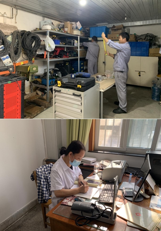 工作人员仔细检查企业区域内的安全设备,包括安全通道、消防器材以及安全警示标志等。