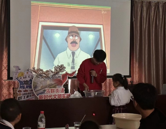 当然,科普课堂中有着这么一处特色亮点:在讲述并实验到水流对光线有着弯曲影响时,志愿者以孩子们喜闻乐见的动漫《名侦探柯南》中的一段案情进行了融合,加深了孩子们对此知识点的记忆印象,效果十分明显。