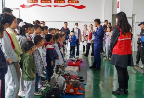 2023年11月4日上午,钟山职业技术学院数据管理与工程学院与果场社区新时代文明实践站进行联动,在马群消防救援站,组织社区未成年人及其家庭开展了一场迎接“119”消防宣传日特别活动——消防安全童心相伴。