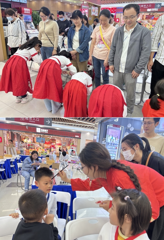 释菜礼和朱砂启智环节是活动的亮点之一。释菜礼是中华传统文化中的一种独特礼仪形式,代表着对对方的尊重与敬意。孩子们在工作人员的指导下,学习了释菜的基本动作和意义。朱砂启智则是一种古老的启蒙教育方式,通过传统的文字书写,培养青少年的学习兴趣与思维能力。青少年们用朱砂和毛笔练习书法,感受到了中国书法的魅力与智慧。