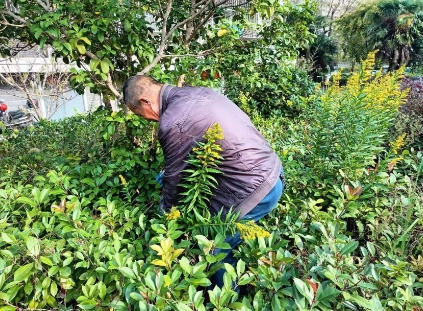 新园社区河长周红军在巡河时发现公园佳苑一期河边绿化带生长着大片一枝黄花,立即组织人员对其进行清理,共拔除一枝黄花42株,净化了生态环境,为本土植被提供了安全的生长空间。