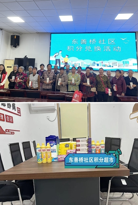 “互助积分”主要通过参与社区组织的例如义务照顾其他老人、上门做需求调查、捐赠款物等各类养老互助活动获得积分,用累积到的积分在积分兑换超市兑换日常生活用品或其它服务项目。这一举措得到了老人们的积极参与,在活动中,他们不仅加强邻里间的互动交流,还感受到了自身的价值与收获,获得了幸福快乐的满足感。