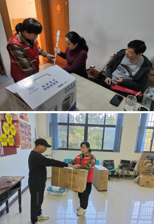 前期,残协工作人员和工会志愿者入户进行摸底调查,针对残疾人不同需求和特点,筛选出有辅助器具需求的肢残人士和辅具类型,残协邀请专家上门对每位申请人进行评估、适配,保障辖区内所有残疾人都能得到个性化适配的辅具。视力残疾人葛女士接过盲仗和语音电饭煲激动地说:“我以前一直觉得由于身体缺陷,很无助,今天让我感受到未来的美好,感谢社区的帮助。”