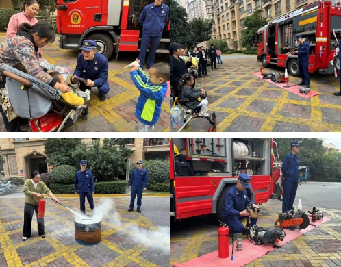 活动开始后,消防战士耐心细致地向居民朋友们讲解消防科普知识,展示消防装备,介绍室内消火栓、灭火器等各种器材的用法以及各类消防服装作用,引导居民参观消防车辆及器材装备。现场居民们积极踊跃提问,气氛热烈。随后,在消防员的指导下,有居民朋友现场实操了灭火器的正确使用方法,并进行了灭火。