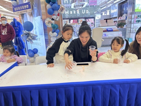 “小朋友们,你们知道白醋+小苏打可以灭火吗?”工作人员现场展示了如何使用白醋和小苏打来扑灭小蜡烛的火源。通过这些实验,孩子们了解了最基本的灭火方法,增强了自身消防安全意识,提高了应急处理能力。