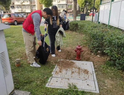 宣传活动结束后,大学生们在小区内开展清洁家园志愿服务。大学生们拿着扫把、垃圾钳等工具清理楼道杂物、生活垃圾、烟头等。经过大家的共同努力,东山社区的环境得到了较大改善。