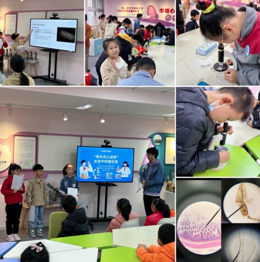 这是金陵驿“啄木鸟”未成年小讲师们的首次科普服务,小讲师们不仅加深了对生物知识的了解,而且锻炼了语言表达能力,他们的讲解得到了听众的一致好评。在志愿者的带领下,孩子们既了解到水体中微生物的种类和形态特征,更掌握了普通光学显微镜的使用方法,亲眼观察到了奇妙的微观世界,对下一次的生物实验课充满期待。