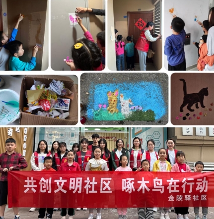 秋风送爽桂花香,盛世丰歌四海扬。为了美化社区环境,提高社区人民生活幸福感。近日,金陵驿社区“啄木鸟”未成年志愿服务队联合南京理工大学公共事务学院开展“啄木鸟美容师:大手拉小手,共绘五彩社区”的主题彩绘活动。