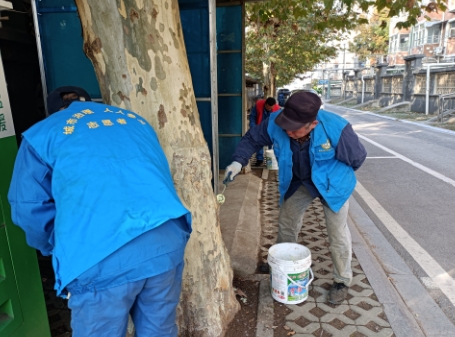 为保护辖区内树木、促进其健康生长,南京市栖霞区栖霞街道栖化新村社区新时代文明实践站联合退役军人志愿队及城市治理志愿者于11月15日开展了秋冬季树木刷白养护行动。