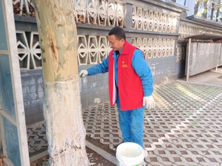 活动当天,志愿者们早早聚集在栖化新村社区,装备齐全地开始刷白养护工作。他们认真地检查每一棵树木的情况,然后用专用的刷白剂小心翼翼地涂抹在树干上。刷白剂的选择以及涂抹的技巧都经过了认真考虑,以确保树木得到最佳的保护效果。