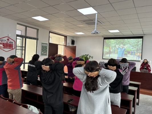 随后,欢快的齐做肩颈按摩操开始了,温柔的双手在空气中起舞,为每个参与者带来了身心的舒畅和放松,将积压已久的压力一扫而空。