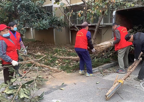 为了解决这一问题,11月10日,润康苑社区组织工作人员、物业人员、保洁和志愿者等联合行动,对小区内枯死的树木进行清理,并及时清运剪落树枝等,全力保证居民生命财产安全。