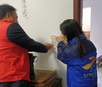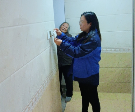 此前,和平村网格员在例行辖区内日常巡查时,有孤寡老人向她反映,家中的灯坏了,自己一个人在家且行动不便,希望尽快把灯修好。在接报后,和平村的网格员和志愿者及时展开行动,他们深知,良好的居住环境与舒适的家居条件对老年人来说至关重要。于是,他们自发地组织力量,携带专业工具和爱心,冒着寒冷上门为孤寡老人修复家中的灯光。