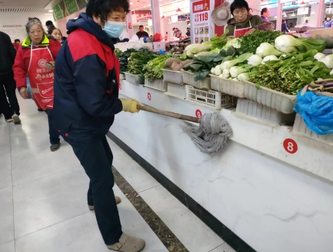 “请经营户运菜的三轮车停放在固定的停车位上”、“请买菜的电瓶车有序的停放好”、“请不要把摘下的菜叶丢在地上,放到垃圾桶内”、“请熟食区的经营户戴好口罩和帽子”、“请不要在市场内吸烟”……每天,西洋桥菜市场南通劲玥物业管理有限公司物管人员都会重复这样的文明行为宣传。