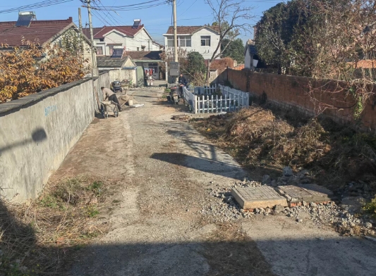 近日,南京市江宁区江宁街道朱门社区星塘组村民程益明向社区发出求助,他家的入户道路因为污水管网建设而被开挖,导致路面坑洼不平严重破损。这不仅影响了村民日常的出行安全,还与美丽乡村的环境格格不入。同时,道路旁边的一个小池塘紧靠该段道路,常有孩子在此玩耍,也存在一定的安全隐患。此事引起了社区的高度重视,社区立即对现场进行实地察看,并制定了解决方案。