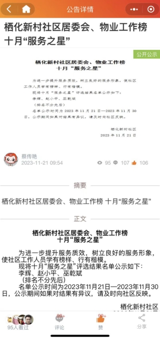 评比结果还将通过“掌上云社区”的通知板块进行公示,让居民可以随时了解“服务之星”评比的最新动态。