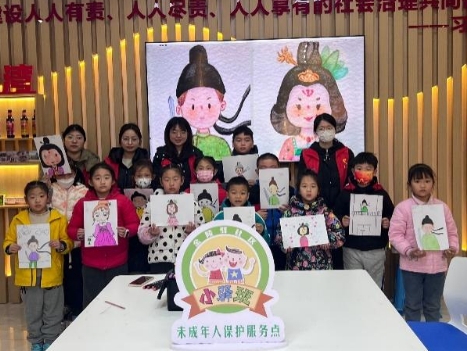 活动开始,伍老师先是通过图片和动画视频让青少年欣赏梦幻般繁盛的大唐,引发小朋友们对于唐朝历史的兴趣,小朋友们纷纷举手并踊跃发言,说出自己对于唐朝历史的了解。随后伍老师从学生熟知的唐代诗人李白入手,带领小朋友们齐读了《望庐山瀑布》《静夜思》《黄鹤楼送孟浩然之广陵》《早发白帝城》四首唐诗,并详细讲解了古诗的内涵,通过诗歌朗读和理解,小朋友们感受了盛唐气象,同时也慢慢走近诗人李白的内心。最后让青少年结合所学和自己的想象“画出喜欢的人物”,可以是李白,杜甫,王维和玉真公主等,现场创作情绪高涨,每位小朋友都画出了令自己满意的作品。