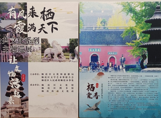 活动现场,块块精美的文化展板吸引了众多居民驻足观看。这些展板内容丰富,涵盖了关于栖霞寺、千佛寺、舍利塔等文化展板。通过观展,居民们不仅了解了栖霞的历史背景和建筑风格,还领略了其深厚的文化内涵。