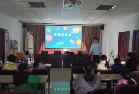 随着清脆的铃声响起,天文知识的探索之旅拉开帷幕。陈政同学向小朋友们介绍了日常生活中见到的星体,并讲述了登月的历程,随后陈政通过引入一些简单的天文问题,引发小朋友们对宇宙的思考,并引导他们讨论流星现象。通过陈政同学生动有趣的讲解,小朋友们听的津津有味,纷纷举手回答问题,和老师积极互动。
