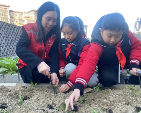 聚焦“一小”,编织“成长摇篮”。在高店社区新时代文明实践站,张謇小学的学生们跟着党员志愿者参观屋顶农场,学习农作物的生长,除草、翻土、掘坑、浇水、放苗、施肥,感受着劳动实践带来的快乐。