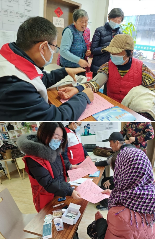 活动当天,医生为前来参加的老人提供了测血压、血糖等基础健康检查服务。医生按照流程有序进行逐项检查,详细记录每位居民以往所患疾病、治疗及用药情况。有针对性地给予老年人解答和正确的健康指导。活动现场,社区红十字志愿者还向每位老人发放了《买社保缴费一封信》,详细介绍了社保缴费的相关政策和注意事项。
