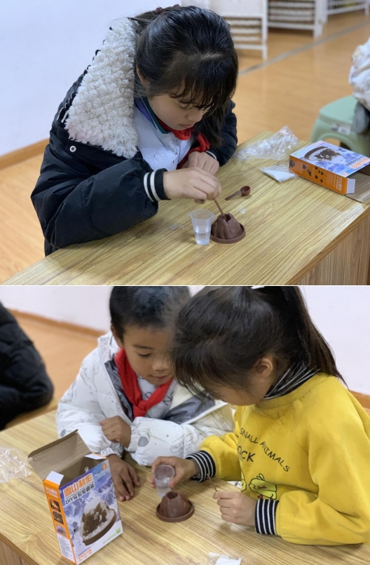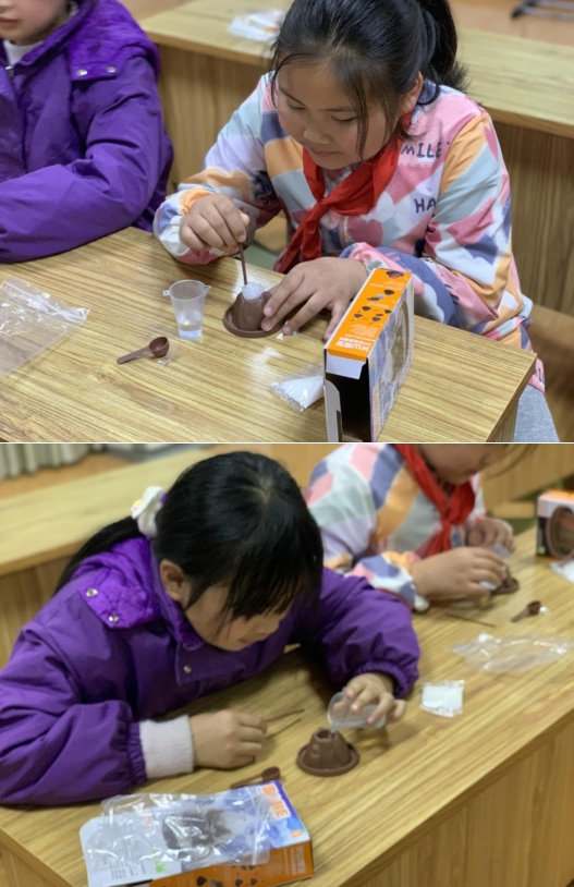 活动现场,青穗学堂孙老师为孩子们详细介绍了雪山的形成原理,解释了水的凝固过程。随后,他们使用特制的模具和一些材料,如水和盐,制作出了逼真的小雪山。孩子们亲自参与其中,通过动手操作,深入了解了科学实验的过程和原理。通过简单的实验步骤,孩子们学会了如何制作出令人惊叹的小雪山。
