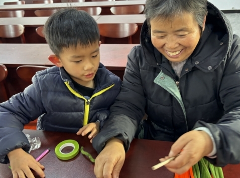 在活动中,组织者还发放了柿子树材料包,引导亲子们进行分工合作,完成作品。这不仅提升了亲子间的亲密交流,还培养了他们的分工协作能力。