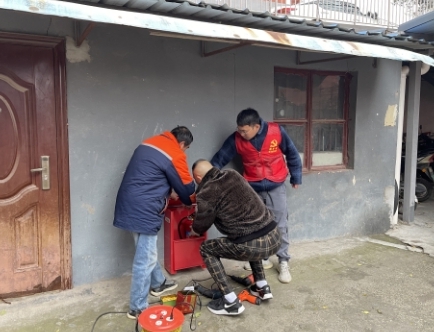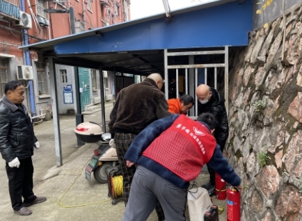 电瓷新村社区严防火灾,加装灭火器保障车棚安全