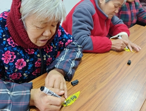除了知识的传授,活动还设置了一个别具创意的环节:在树叶上写祝福。居民们纷纷拿起笔,在树叶上写下对环保的祝福和承诺。这种形式的参与让居民们更加亲身地感受到了环保的意义,激发了他们对环保的热情和行动的决心。