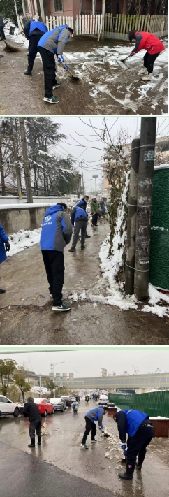 社区党员干部、网格员、志愿者通力合作,手持铁锹、扫帚等工具,顶着寒风在辖区主要出行路段、人行道等易产生安全隐患的区域清理积雪、布置撒盐,努力降低积雪结冰给群众出行带来的不利影响。临街商铺店主、小区居民也自觉加入清扫队伍,在大家的通力合作下,辖区内外道路畅通无阻。