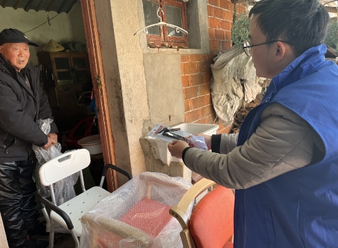 为帮助特困人员提高生活质量,切实为居民办好事、做实事。近日,南京市江宁区湖熟街道绿杨村的网格员们为特困老人王贤春上门发放助老用具,让老人在寒冷的冬天感受到了社区的温暖和关怀。