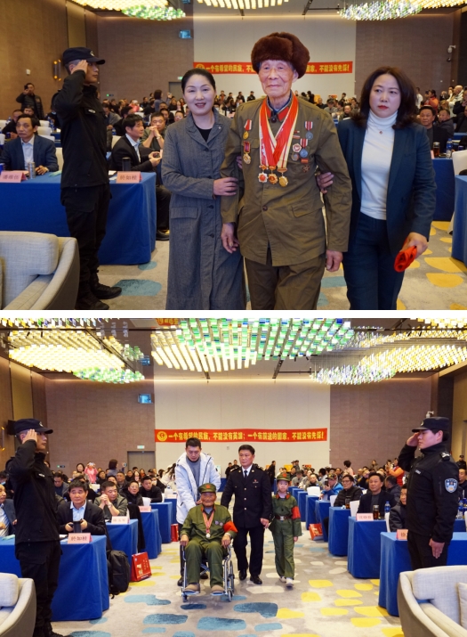 当崔志扬、芮学贤、袁友卿、朱万储等6位老兵被簇拥着走上主席台时,当“老兵归队”“敬礼”等一个个震撼心灵的声音响起时,整个会议大厅掌声雷动,200多名参会代表纷纷起立,向英雄的老兵行注目礼。12月23日下午,地处革命老区茅山的句容假日酒店里温暖如春,句容市关爱退役军人协会成立庆典现场高潮迭起、气氛热烈。