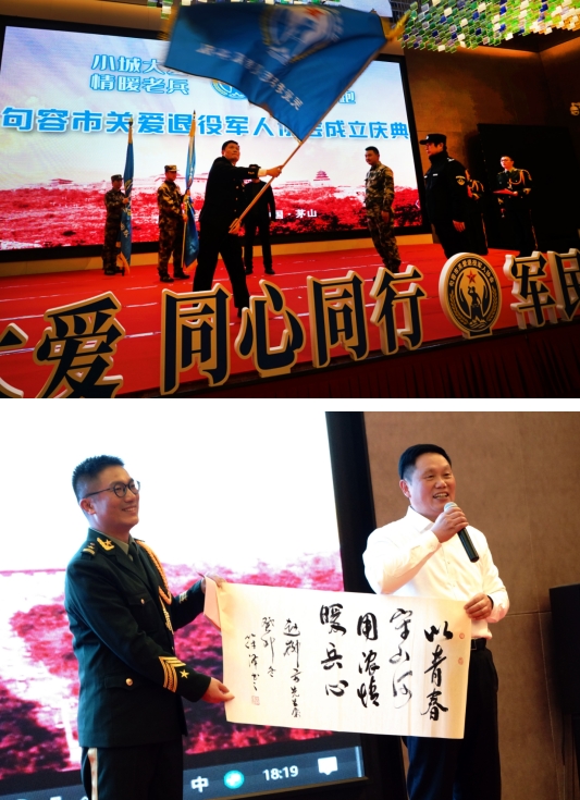 茅山,是一座英雄的山。7000多名革命先烈的鲜血洒在了苏南这块热土上,洒在了茅山这片青山绿水间;茅山,是一座红色的山。各地党委、政府通过打造“铁军营”“红色记忆”“党史学习教育馆”,把红色资源与景点景区、美丽乡村结合起来,展现红色遗迹;茅山,更是一座不朽的山。新中国成立后,句容市优秀儿女高擎红色的旗帜,为立国威、壮军威奉献青春与热血。为了将习近平总书记关于“让军人成为尊崇的职业”的要求落到实处,句容市120多位退役军人企业家发起成立了句容市关爱退役军人协会。为了向社会各界展示协会的创办过程,协会举行了简朴而热烈的庆典。武警江苏总队原总队长顾惠琪将军,武警湖北总队原副政委陆令寿大校,原解放军新疆某边防团团长、镇江市公安局党委委员陈宪根,参加过对越自我反击战的《解放军报》战地记者李青云大校,全国模范退役军人、第八届江苏省道德模范於如桂,全国模范退役军人、江苏华腾军创科技园有限公司董事长潘维伍,句容市退役军人事务局局长段续文,6名参加过解放战争、抗美援朝、“两山”轮战的老兵,句容市各乡镇、街道退役军人服务站站长,来自南京、江阴的公益慈善组织和协会会员企业负责人共计200多人见证了这一盛会。