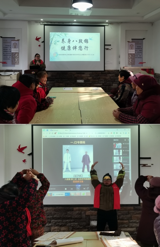为进一步倡导树立新时代文明健康生活方式,引导村民科学健身,12月26日,南京市江宁区淳化街道茶岗村新时代文明实践站联合红叶社工,在大花区议事园开展“养身八段锦 健康伴您行”健身普及教学活动。活动旨在弘扬中华传统养生文化,倡导文明健康的生活方式,得到了村民的积极响应和参与。