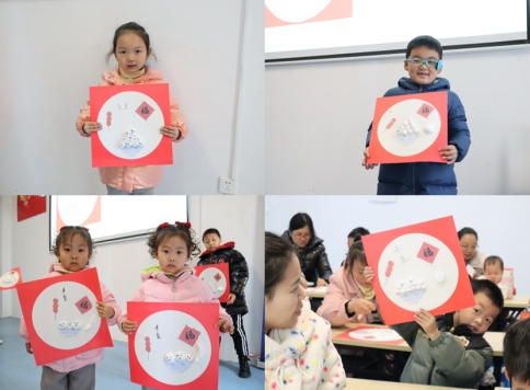 绘本故事结束后,志愿者继续带领小朋友们做起了饺子和汤圆的创意粘土画。小朋友们在红白相间象征团圆的圆形卡纸上,搓出了圆圆滚滚的汤圆,白白胖胖的饺子,贴上了体现中国传统年俗的“福”字。当然也少不了小朋友们喜欢的酸酸甜甜的糖葫芦。