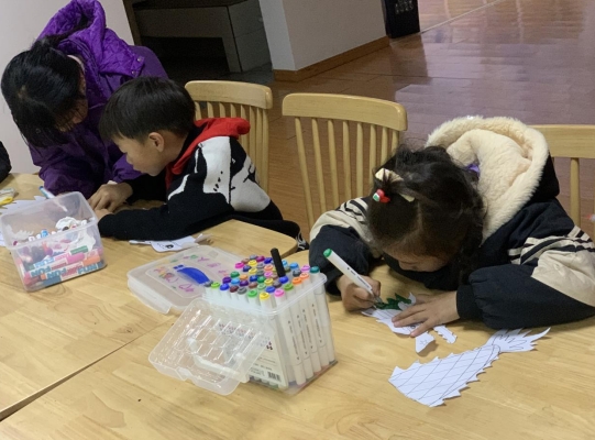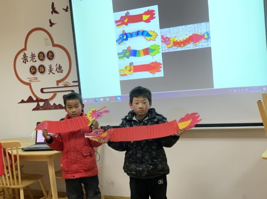 活动伊始,鹤龄社区青穗学堂的孙老师带领社区的青少年们一起动手制作中国龙手工。孙老师首先为青少年们详细介绍了中国龙的历史和文化背景,让大家更好地理解龙这一传统图案的内涵。随后,孩子们开始动手制作,每个人都积极参与,发挥自己的想象力,将剪纸、彩绘等技巧运用到龙的制作中。