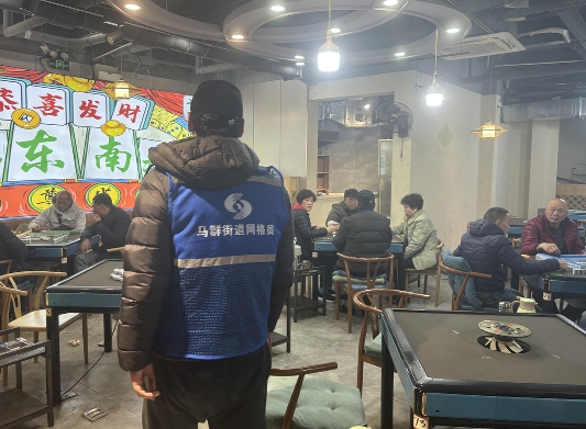 社区环保工作者到棋牌室了解情况,先是查看了桌椅脚,此前用网球垫包裹用以降低噪音,目前已全部覆盖,情况良好。此后社区环保工作者向正在打牌的居民以及门口过往的行人了解情况,据居民反映,夜间经营期间噪音一般,自己很少留意,店主也称自己已经采取了一切能够降低噪音的措施,并在夜间提醒打牌的居民放低声音。