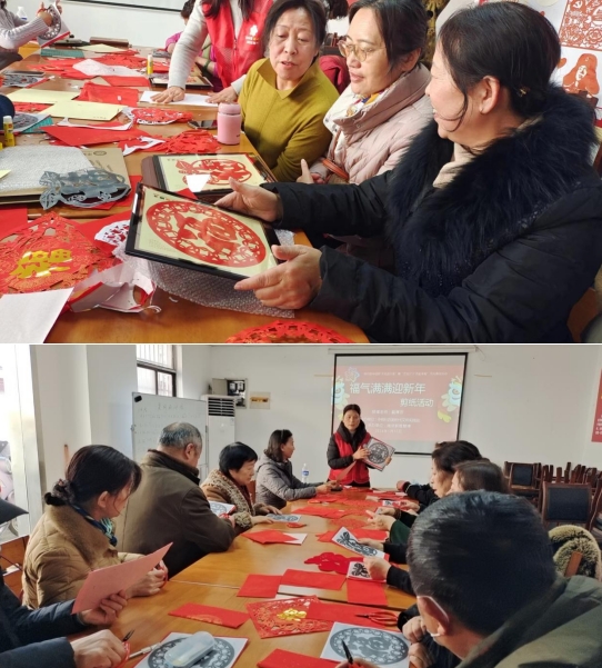 活动现场,非遗剪纸传承人向社区居民展示了精湛的剪纸技艺,他们用一把剪刀和一张红纸,巧妙地剪出了各种精美的福字窗花。这些窗花不仅富有艺术美感,还蕴含着吉祥、幸福的美好寓意。随后,居民们迫不及待开始自己动手展示剪纸技术,他们拿起纸和剪刀,跟着图样小心翼翼地开始创作,一双双巧手,,把一张张纸片变成了精美的窗花,看着手中的窗花作品,大家都露出了开心的笑容。居民们纷纷表示,通过这次活动,他们更加深入地了解了非遗剪纸的独特魅力,感受到了中华文化的博大精深。