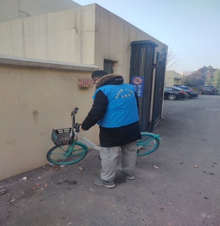 时间进入2024年的1月,天气还是很冷,但是冬天难道的阳光还是照耀着大地,南京市栖霞区马群街道百水家园社区的城市治理志愿者们,依然兢兢业业的履行着自己的使命,经过2023年1年的不懈努力曾经困扰着百水家园小区的共享单车乱停乱放,问题得到了有效的遏制,但是零星的乱停乱放还是在不停的发生,这毕竟是一个长期的工作,居民的素质也不是1年2年的时间能得到有效的提升的,只能是在城市治理志愿者的长期的努力工作下,并扩大宣传,才能让乱停乱放的共享单车慢慢的减少。