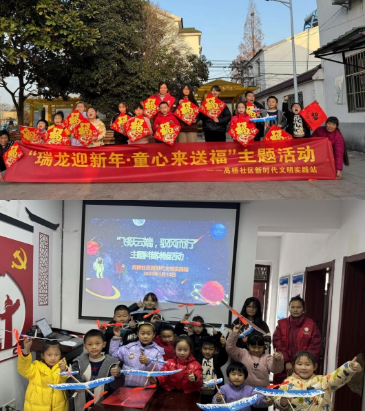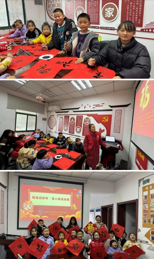 为了提升社区文化氛围,、迎接新春佳节的到来,提升居民和青少年的幸福感和认同感,增强对社区归属感,2024年1月13日,南京市江宁区东山街道高桥社区新时代文明实践站开展“瑞龙送福 喜迎新春”送福主题活动。在浓厚的节日氛围中,通过书写福字,制作手工飞机等活动,传递出对家人的祝福和对新春的期盼。