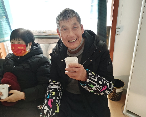 随后工作人员端起煮好的冬季养生茶送到每一位残疾人的手中,大家边喝边露出灿烂的笑容。