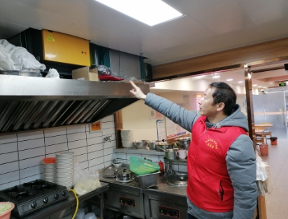 工作开展期间,社区专班工作人员定期巡查辖区工地、餐饮单位。在巡查在建工地时,督促项目施工单位针对前期发现的裸土覆盖、车辆带泥上路等问题,加强对现场的管理,避免再次出现这类问题。对于餐饮经营单位,专班组人员检查“码上洗”二维码是否有缺失,并提醒部分餐饮单位及时清洗油烟净化设备,保留好相关资料。