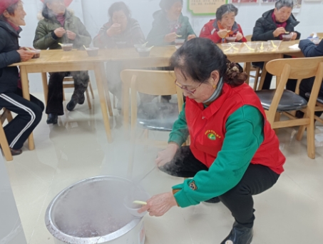 活动中,工作人员耐心熬煮腊八粥,保证粥的香浓和口感。同时,也准备了一些腊八节的传统食材和小吃,让老人们在这个特殊的日子里感受到家乡的美味和温暖。志愿者将热腾腾的腊八粥送至老人手中,老人们接过粥,脸上洋溢着喜悦和感激的笑容,这份关怀让他们倍感幸福。