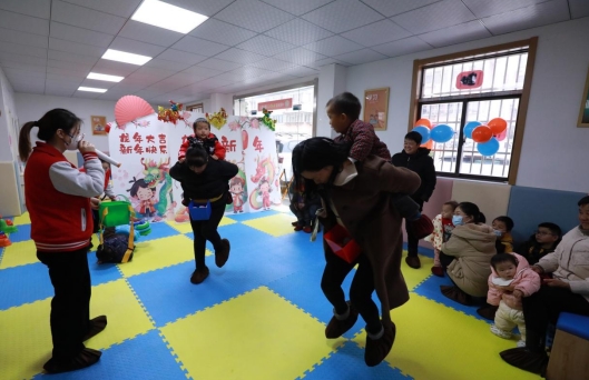 最后,一场抖小球的小游戏引发了活动高潮,家长们有的抱着孩子,有着背着孩子,蹦蹦跳跳努力将身后框子里的小球抖落出去,周围的家长们纷纷为其加油鼓劲,欢快的音乐伴随着热血的游戏迎来了本次活动的落幕。