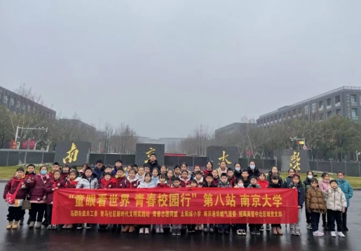 1月20日,南京市栖霞区马群街道青马社区新时代文明实践站组织掌云志愿者带领辖区小朋友开展"童眼看世界 青春校园行”第八期——走进南京大学仙林校区”活动。大学生志愿者和小朋友们一起参观南京大学,使同学们更深入感悟百年南大校园文化。