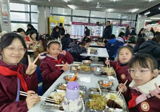 活动的最后,两位大学生志愿者陪同小朋友们来到南大食堂,在满是书香的环境中,小朋友们和南大的师生一起享用热腾腾的美味午餐,结束了今天收获满满的行程。